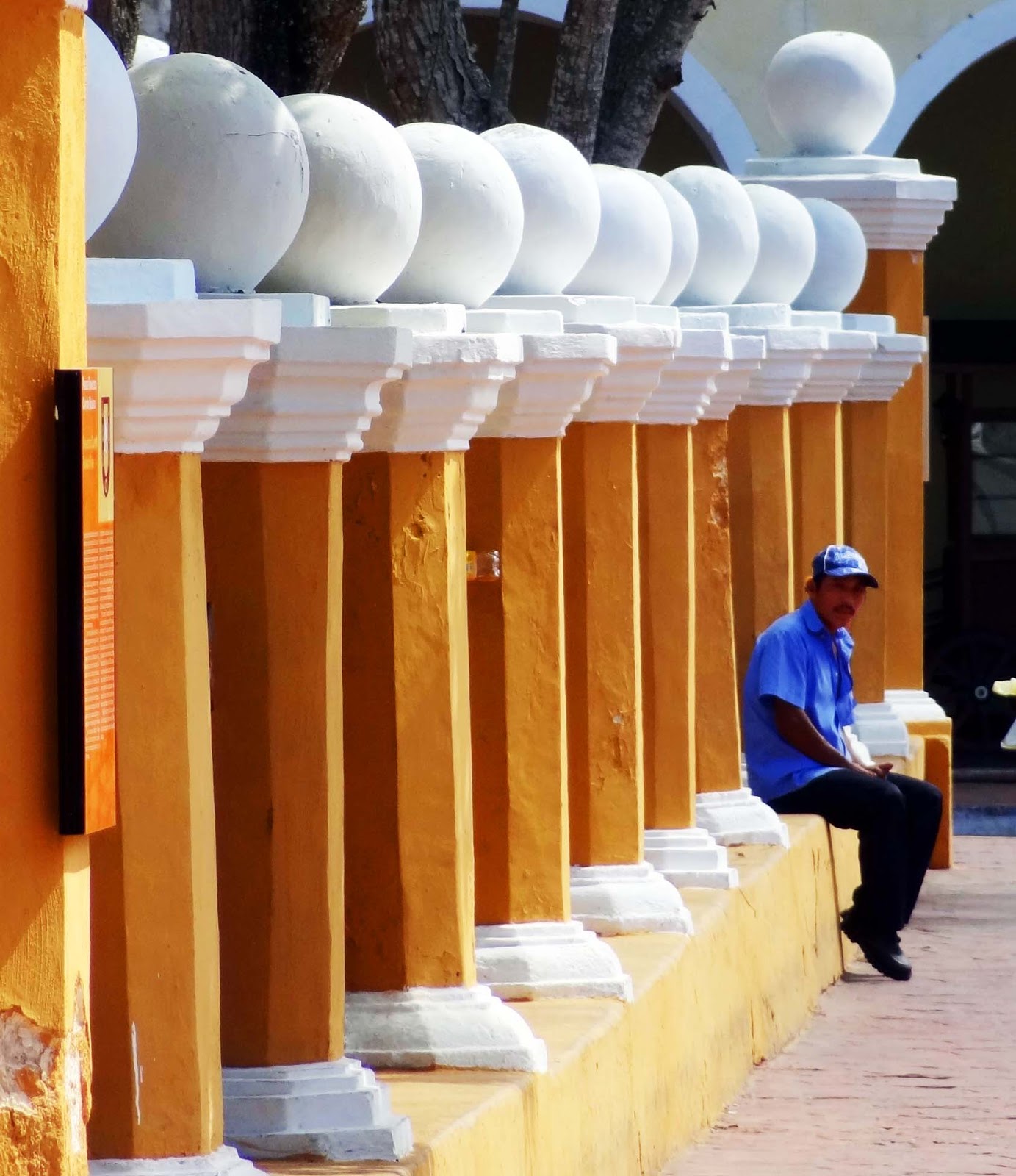 Valladolid is a town of approximately 50,000 people located in the State of Yucatan. It is centrally located near the popular Mayan archaeological sites of Chichén Itzá and Ek' Balam, but is also a popular destination in itself as an historical colonial Spanish influenced town. It is a two-hour drive west of Cancun. The roots of the town and much of its population today is of Mayan ancestry. The family above was sitting in the shade of the main downtown plaza awaiting their ride. I think the little one is watching the cumulus clouds racing through the brilliant blue sky overhead.