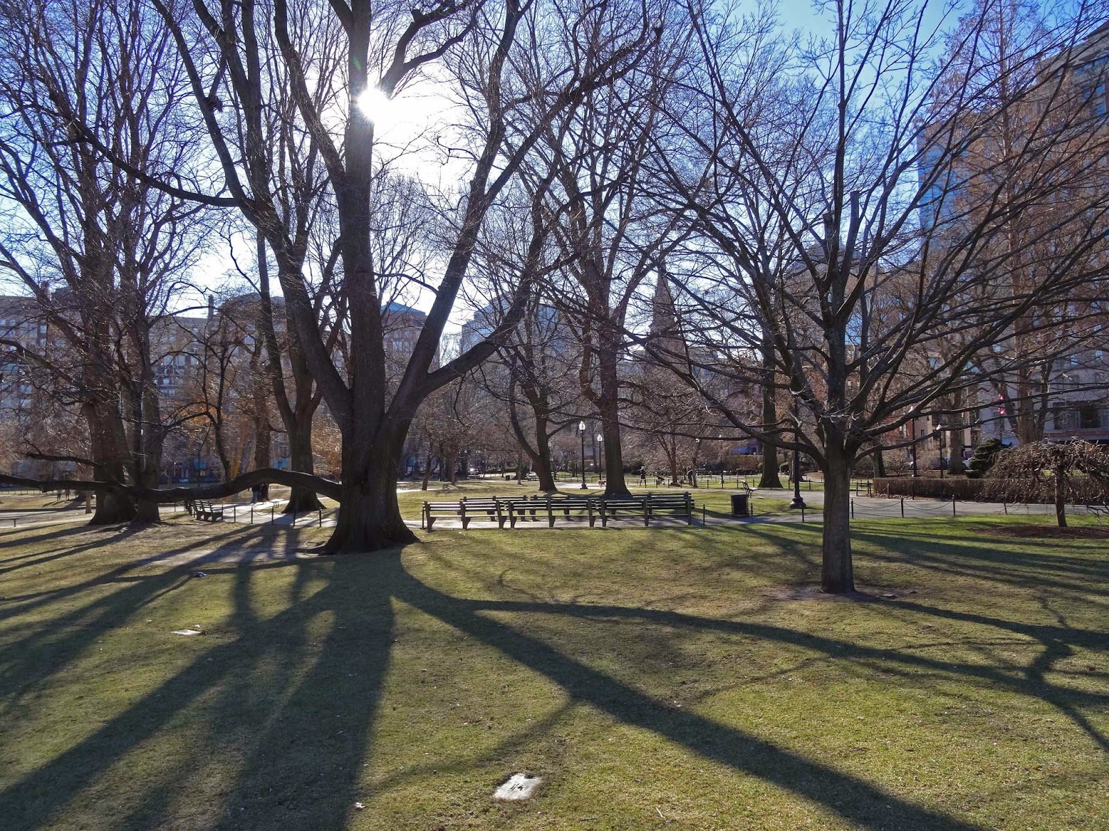 A view of some of Boston's best (and pricey) real estate - along Beacon Street, adjacent to the Boston Common, all with a southern facing exposure.